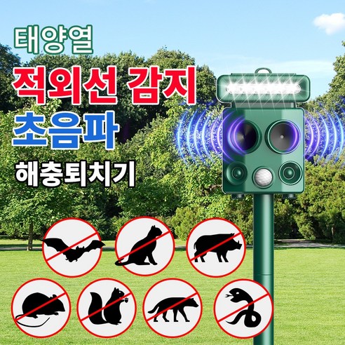 CCAGU 태양광 강력초음파 해충퇴치기 30여종 야생 유해동물 쥐 박쥐 멧돼지 고라니 퇴치 적외선탐지40피트 LED 경광등