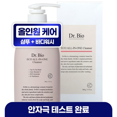 닥터바이오 에코 올인원 클렌저는 온 가족이 함께 사용할 수 있는 클렌징 제품으로, 특히 민감한 피부를 가진 아기부터 성인까지 모두 사용할 수 있어요.