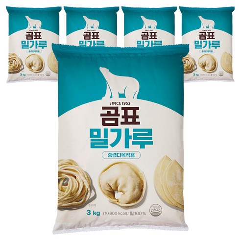 다목적욕으로 여기저기 사용하기는 중력밀가루가 좋은데, 특히 칼국수나 수제비, 만두 등을 요리할 때 가장 기본적으로 사용하는 제품이에요.