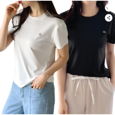 품명: 제이그린 여성 심플 스마일 자수 라운드넥 반팔 티셔츠 2P